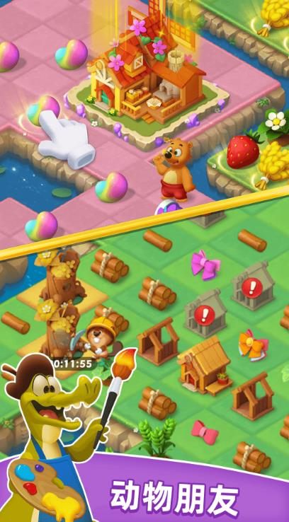1在那片充满生机的庄园里,许多活泼的动物朋友与你相伴。你可以通过合成的方式,助力它们一步步成长蜕变,解锁更多新奇有趣的互动表现。