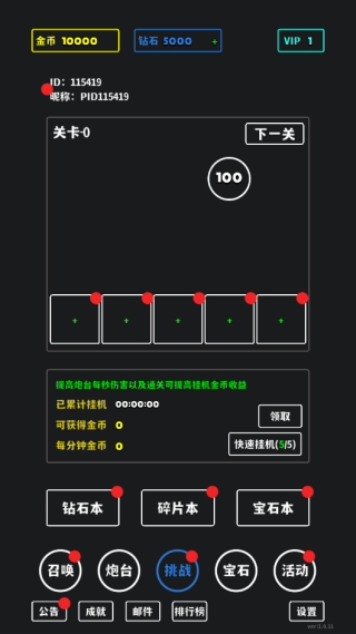 2、一开始会拥有一定数量的金币和钻石资源,能够从关卡0开启挑战。