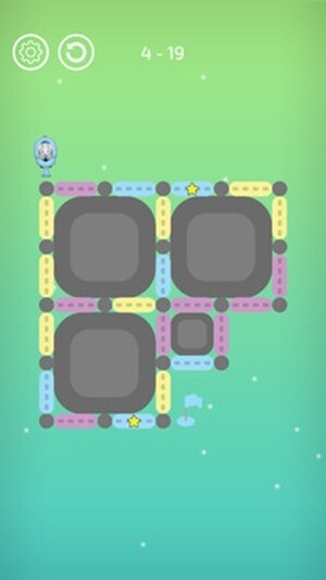 游戏过程中,得转动方块让同色的路径连通起来,每个角色都对应着不一样的颜色标识。