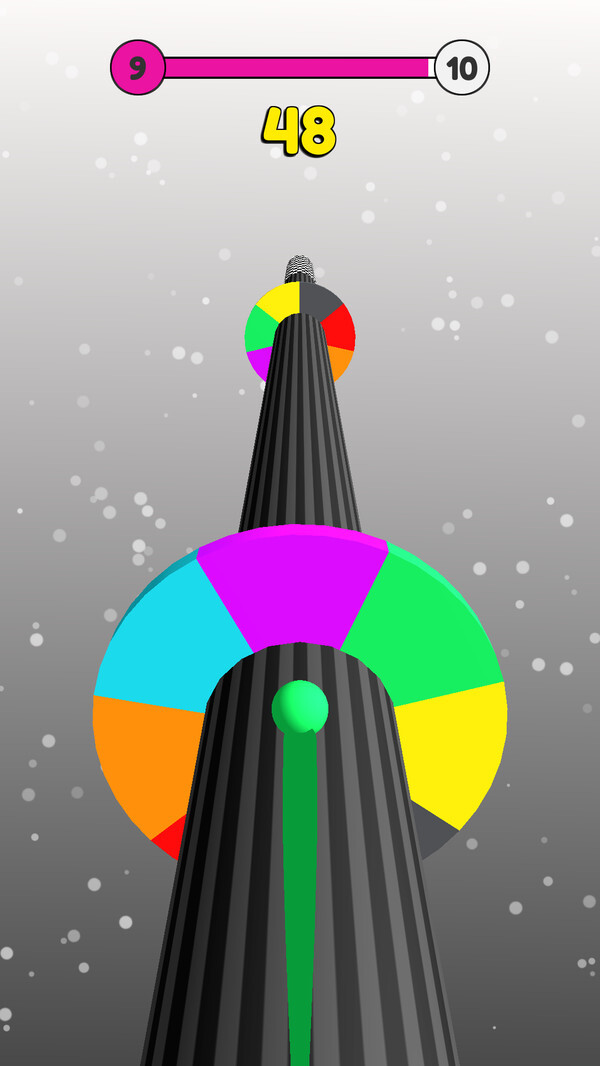 2、障碍物有不同的颜色区分,你得在小球经过之前滑动到对应的色彩位置。
