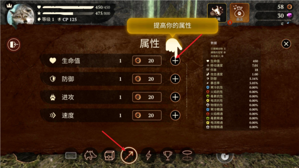 5、击败猎物后就能够获得金币了,利用金币就可以提升你的各项属性了。