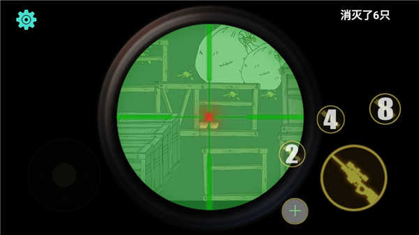 3、也不需要太多的操作性,玩家们只需要瞄准狡猾的老鼠,将其精准的击毙即可,可以合理使用放大镜。