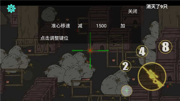 4、瞄准偷粮食的老鼠来进行射击,不要让老鼠成功的偷走粮食则游戏胜利,点击设置即可调整键位,使射击更加准确