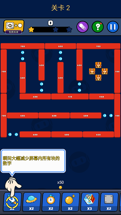 不断提升自己的技能,才能够让你发射小球,把所有的砖块全部都消除。