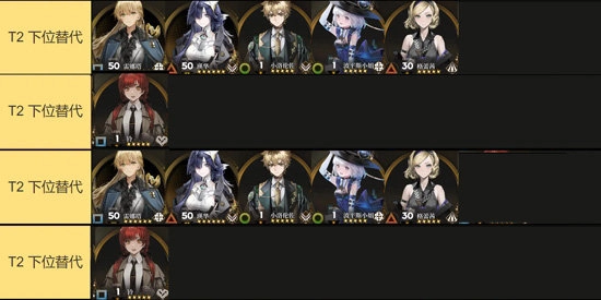 T2的下位替代角色包括:雷姆塔、英华、小洛伦佐、波平斯小姐、格蕾萨以及铃。