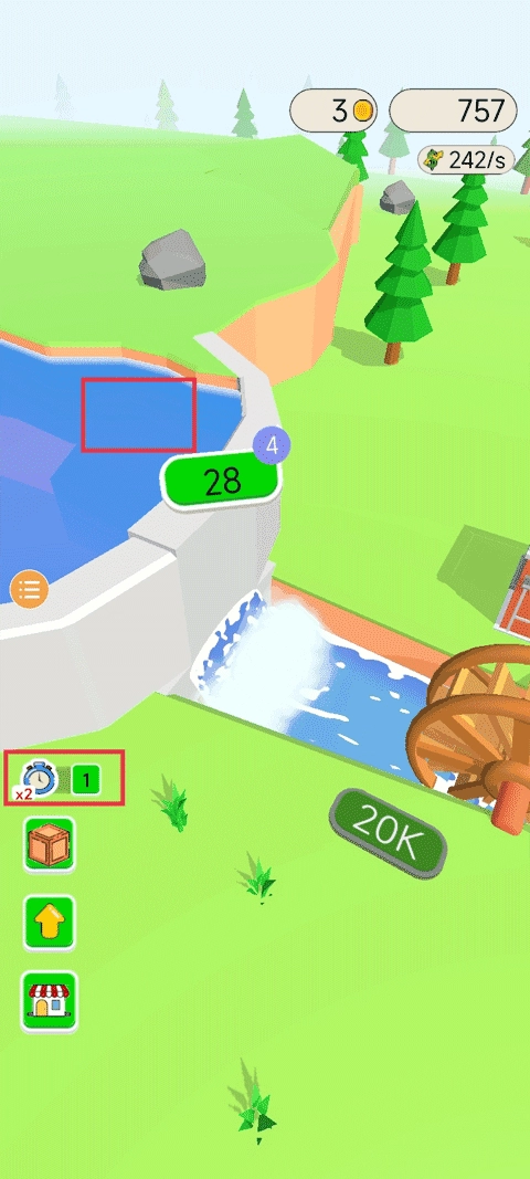 3、有时还得留意水库里偶尔浮在水面的盒子,里面装着辅助道具,能缩短水力发电机的运作时间。