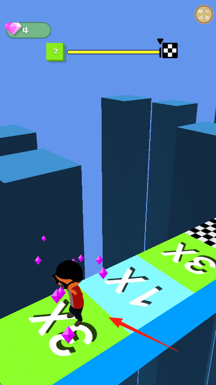 2、在前进过程中收集赛道上的钻石,当遇到带有倍数标识的方格(例如【3X】)时,建议尽量踩上去,这样可以提升钻石的获取数量。