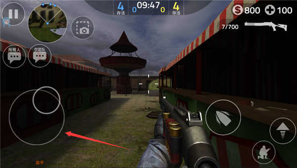 3、移动左下角的轮盘可以控制人物的移动方向;