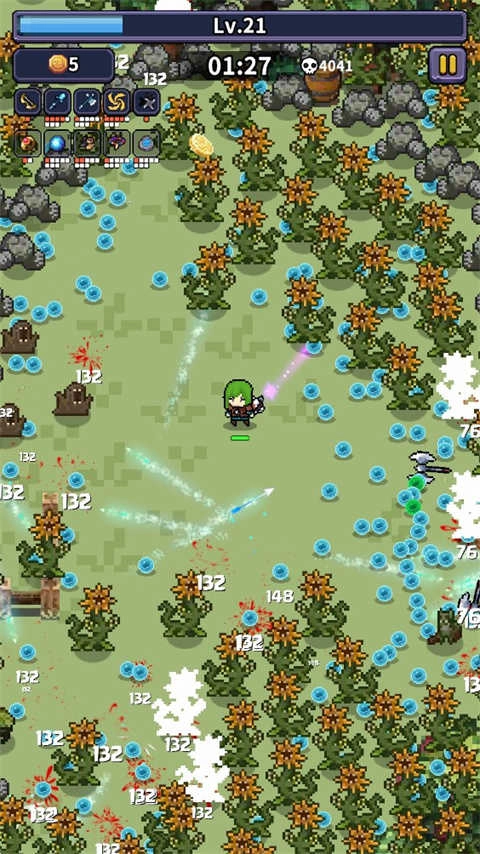 3、游戏采用像素风格的画面设计,拥有更为丰富的技能与装备搭配体系,玩家可以通过组合技能实现全地图范围的灵活移动与走位操作,尽情体验刷怪闯关的乐趣。