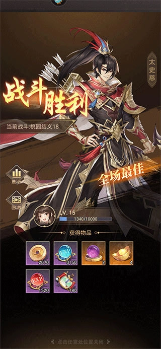 2、战斗结束后,若想回顾刚才的战斗过程,可点击回放功能进行观察研究;点击统计选项,则能查看武将在战斗中的输出、治疗等详细数据。
