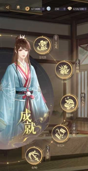 游戏里的成就主要有金兰之义、恋念缠绵、绣衣天下、日理万机、刀光剑影这五个类别,达成成就不仅能拿到所属分类的积分,还能获得五铢钱、白金币、提升好感度的道具、用于培养密探的交易道具以及各类称号等奖励;另外,当某个分类的积分累积到特定数值时,还可以领取白金币、符传、专属称号、头像框之类的积分专属奖励。