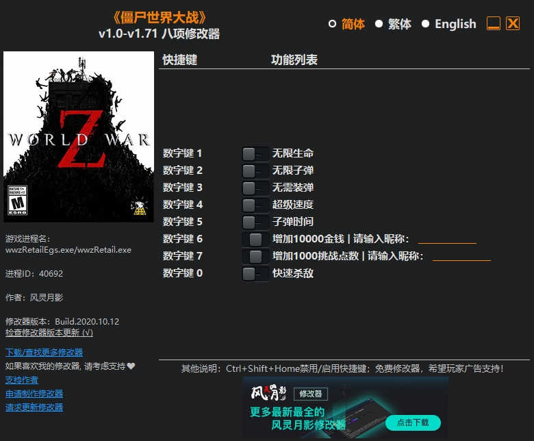 4. “增加10000金钱”需要输入你的玩家昵称才会生效。