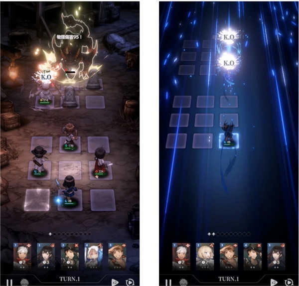 玩家需要招募英雄组建自己的部队保卫领地,战斗方面采用回合制,遇敌式触发。每个回合都可在九宫格的小地图中随意放置角色,拉动底下的角色头像可调整角色的行动顺序。角色会优先攻击与自己同一直线上的敌人,可通过击退改变敌方站位,搭配角色特有技能通常能够打出意想不到的效果。