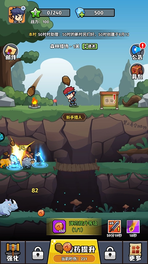 开局仅得一把刀,所有武器都要靠锻造敲制,不过开局就直接赠送1000把武器,这下闯关完全没有压力了