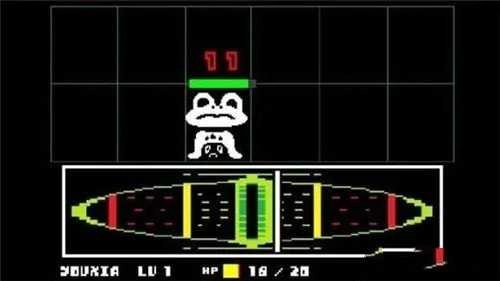 点击“fight”进入攻击画面,形式和节拍音游差不多,在白色条纹从左向右移动时,在中间处确定打出最大伤害。
