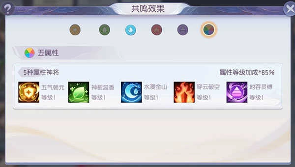 3、上阵特定数量相同属性的神将,或是集齐五个不同属性的神将,都能触发五行共鸣效果,不仅能获得属性加成,技能对阵容强度的提升效果也十分显著!赶紧去探索各种不同的阵容搭配吧!