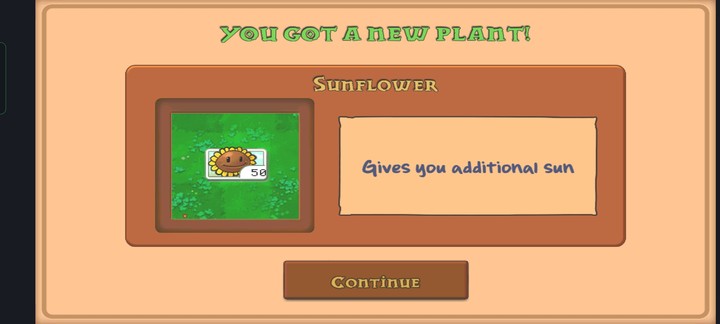 4、当你成功收获向日葵,就意味着已顺利通关,请点击【continue】按钮