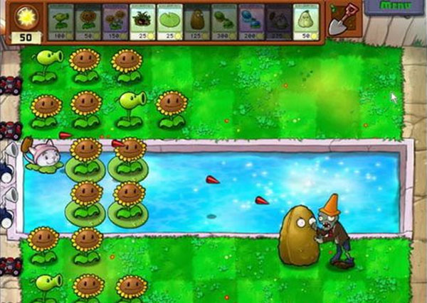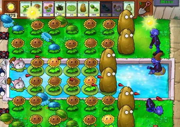 6、把植物都种好之后,我们就只关心僵尸移动的快慢了——要是它们能走得快一些,那我们通关也会轻松不少。