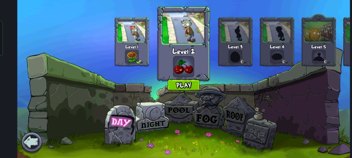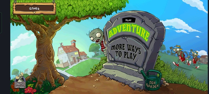 1先打开植物大战僵尸国际服的最新版本,找到石碑上方的开始按钮并点击,就能进入游戏游玩了。