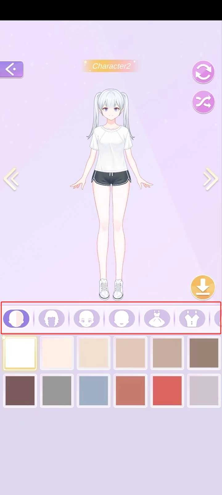2、进入装扮界面后,玩家能够对角色的肤色、发型、眼睛、嘴巴、服装、鞋子、发饰等进行调整,这里有丰富多样的选项,玩家可依据自身喜好自由搭配;因本版本,玩家无需观看广告就能获取物品。