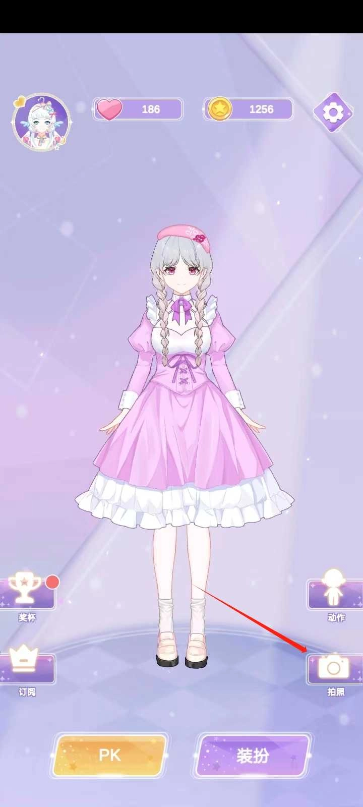 4、之后就会回到最开始的那个页面,我刚刚完成的装扮任务也已经保存好了,点击旁边的【拍照】按钮。