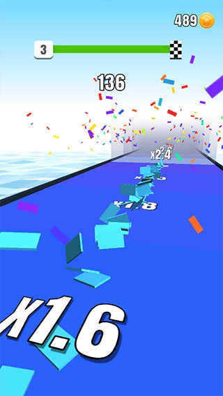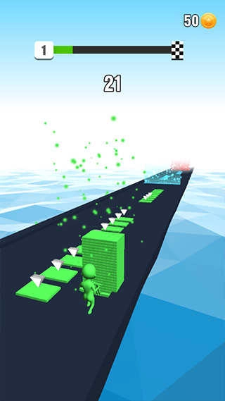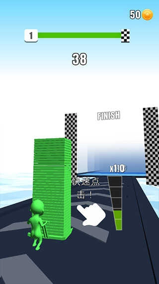 收集与小人颜色一样的砖块,碰到其他颜色的方块会消减已收集到的方块的数量。