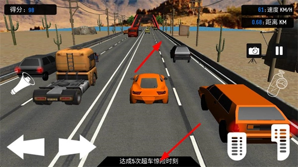 3、利用左侧的按键操控车辆方向,同时借助右侧的按键控制油门与刹车。