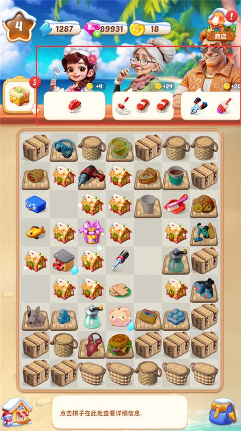 2、在界面里查看任务要求的物品,把正确的物品放到对应的格子中,就能得到金币奖励。