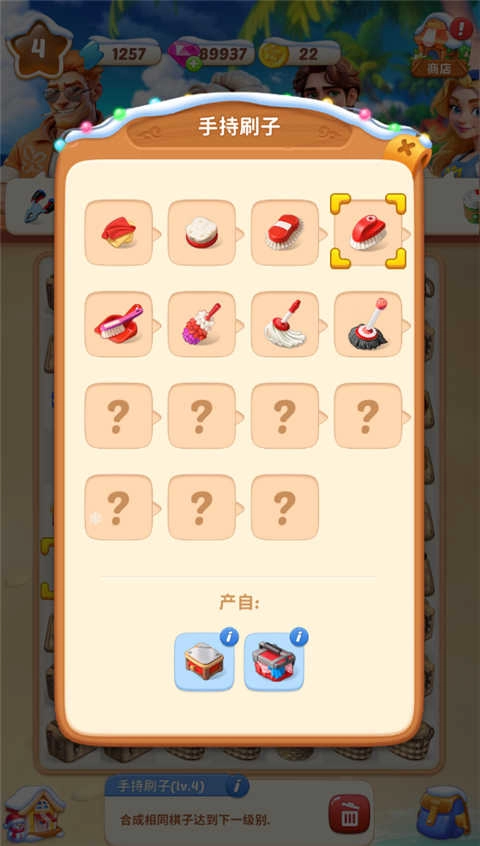 3、通过合成相同的物品,能够将其升级为更高级别的工具与道具,从而解锁更多的玩法内容。