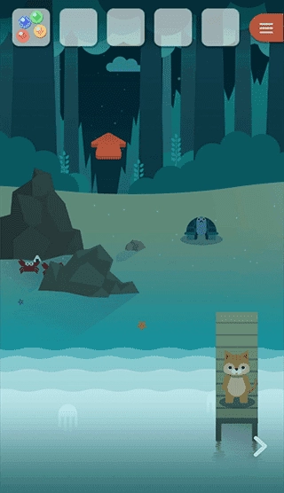 4、把贝壳项链交给乌龟,就能获得漂亮石头;之后回到最初的地点,点击箱子进行安装;完成后再返回乌龟所在之处,接着向上行进。