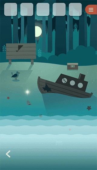 1、开局在一个岛上,点白光,得贝壳,箭头左走
