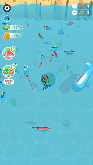 3、为了吸引更多游客我们需要下海去抓鱼