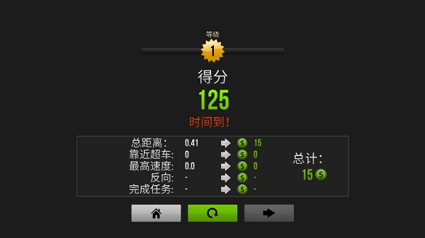 - 以超过 100 公里/小时的速度行驶时,紧追交通车辆获得奖励分数和现金