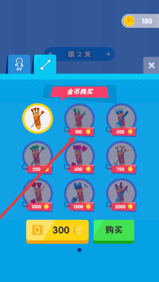 3进入店铺后,找到那个被箭头标记的、售价100金币的箭矢类物品,点击购买按钮将其收入囊中,以此来提升武器的性能,为接下来的第二关挑战提前做好准备。