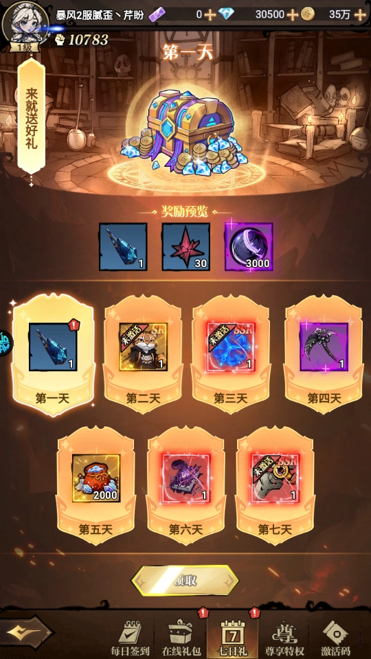 2、新手玩家使用闪现功能就能领取七日礼包,连续登录七天后还可获取史诗级武器。
