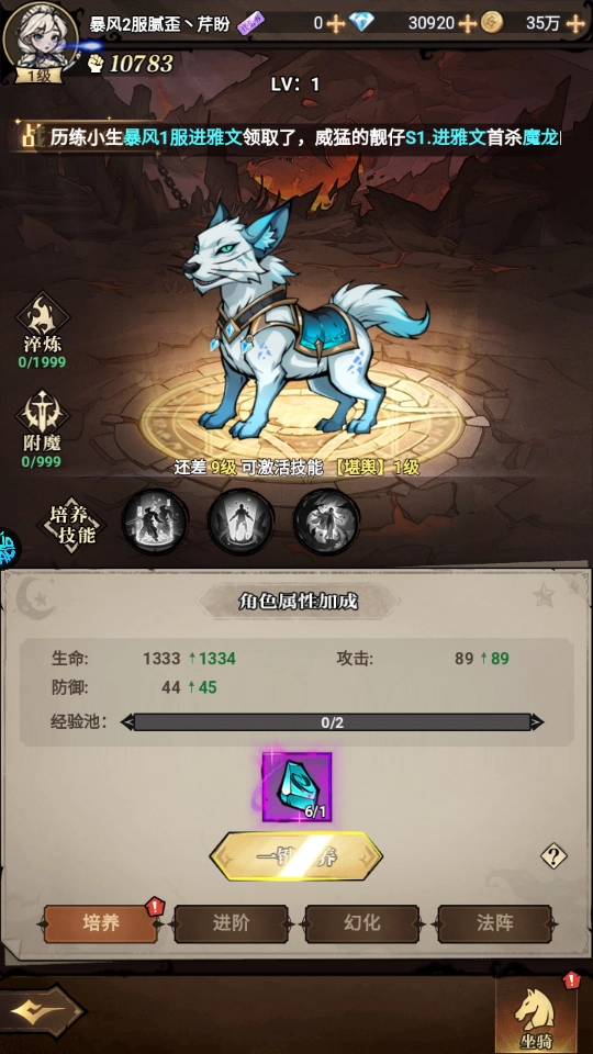 3、还能培养专属宠物,通过提升它们的生命值、攻击力、防御力等属性,来增强自身的战斗力。