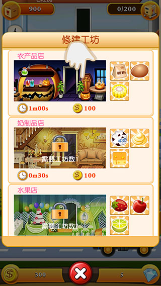 2在工坊列表界面,能看到当前仅解锁了农产品店,现在点击该店铺开始建造流程。