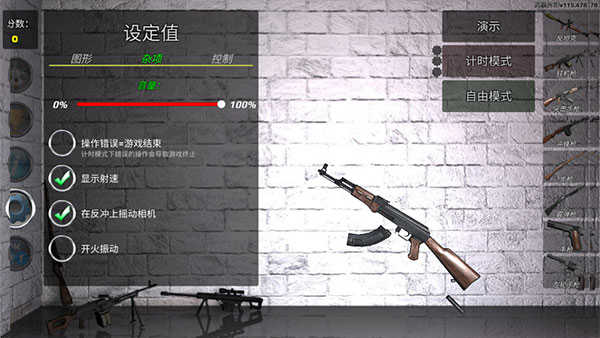 1、进入游戏后,玩家能够借助左侧的控制面板来对枪支进行设置。