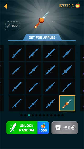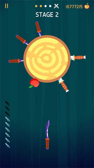 3、苹果兑换玩法——通过收集苹果,解锁更多造型风格各不相同的飞刀,以此增添游戏的趣味性。