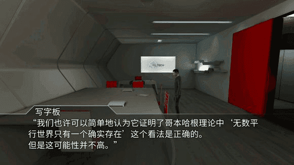 3、首先要讲的是剧情开篇的第一回声世界。这个世界里的女主因为从事记者职业,不知为何(游戏内完全没有相关线索,推测或许是时空悖论的数据已提前存在)被回廊科技公司的高层关进了小黑屋。男主为了救她,潜入回廊科技将女主带了出来,可过程中却忘了处理保安的激光枪,最终导致克洛伊被枪杀。深陷悔恨的第一回声世界(此处需特别强调!)的男主,通过某种途径获取了回声装置(推测这同样与万能情报商脱不了干系),也有可能是利用自家的打印机复制出了该装置。