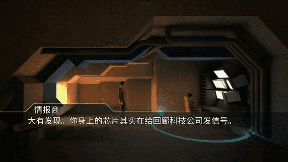 7、从梦境中醒来后,男主在公园偶然捡到了克洛伊的项链(进入剧情关键节点),这成了第二回声状态下的男主踏上寻找克洛伊之旅的动力。随着剧情推进到芯片相关环节,回廊科技公司才在游戏里正式登场。但故事才刚刚展开——男主救出第二回声的克洛伊后,在电梯口遭遇警卫,随后引发幻觉,进入了最后一段完整的记忆与量子结合的过程。之后他被控制住绑在凳子上,等着被第一回声的男主找到,随即被带入了回声装置的世界。