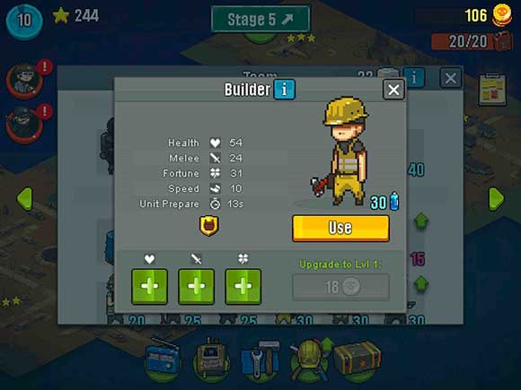 7、建筑工:需配备防弹衣,是游戏前期唯一具备防弹能力的单位,在挑战第三大关时推荐选用!