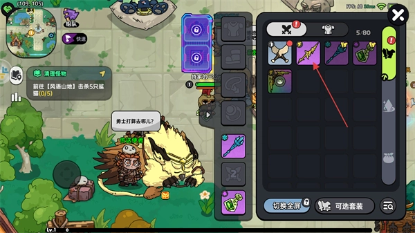 2、点击右上角的角色背包,查看背包里是否有能够装备的武器之类的物资。