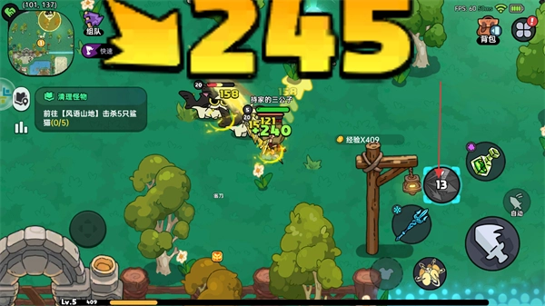 4、离开地图安全区后会遭遇怪物,可点击右下角的攻击技能按键来清理怪物。