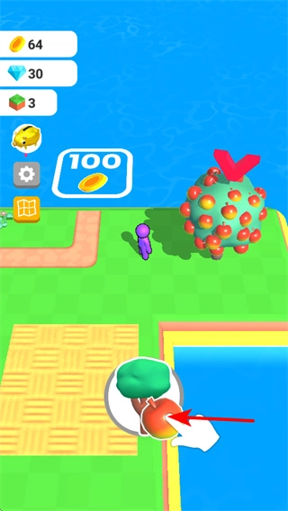 3、摇树操作需依据箭头提示的方向滑动屏幕,滑动过程中要保持操作的连贯性,这样才能顺利摇落果实,获取更多资源。