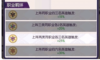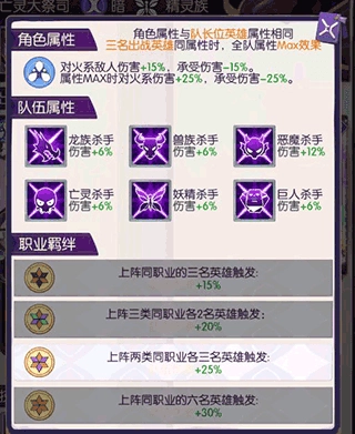 进入主楼层,点击左下方职业羁绊,会显示本游戏战斗的核心机制——角色属性、队伍属性、职业羁绊。