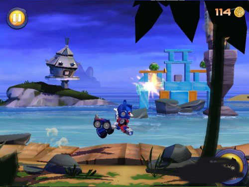 4、操控变形金刚鸟在跑酷时射击,消灭躲在障碍物种的机械猪。