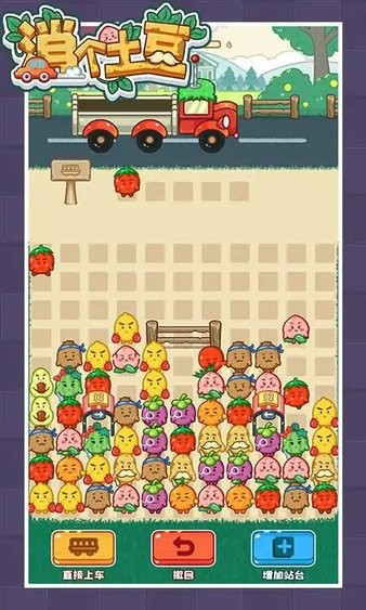 消个土豆是一款创意消除闯关游戏,玩家需要帮助相同颜色的土豆聚集到一起,让它们成功上车,从而完成消除任务。