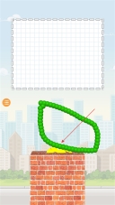 1玩家进入游戏后,先观察当前关卡的场景画面,能看到有个蛋形角色站在砖墙上,接着就可以直接开始思考该绘制什么样的图形来砸中它。