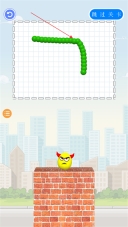 3、图形绘制完成后,需等待其自行下落,使其撞击下方砖墙上的蛋形角色。一旦成功命中蛋形角色,即可完成当前关卡的挑战。